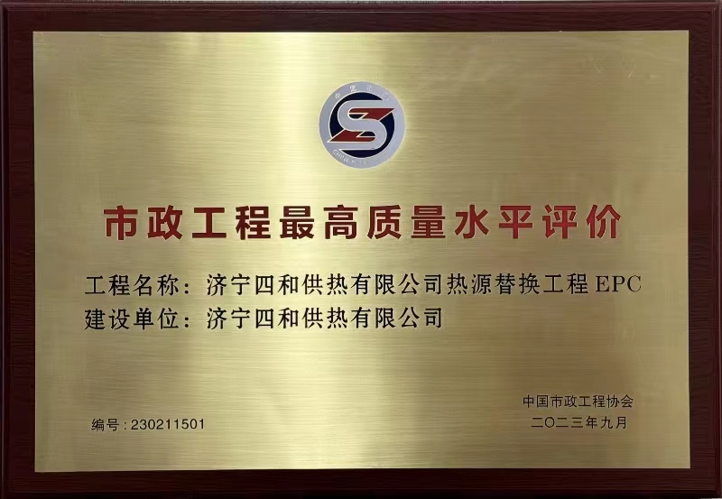 日前,中國(guó)市政工程協(xié)會(huì)發(fā)布《關(guān)于公布2023年度通過(guò)市政工程最高質(zhì)量水平評(píng)價(jià)工程的通知》,其中濟(jì)寧四和供熱有限公司熱源替換工程EPC名列其中。該獎(jiǎng)項(xiàng)由中國(guó)市政工程協(xié)會(huì)組織評(píng)審,是市政工程行業(yè)在工程質(zhì)量方面最高質(zhì)量水平評(píng)價(jià),代表市政工程行業(yè)同時(shí)期國(guó)內(nèi)先進(jìn)水平。